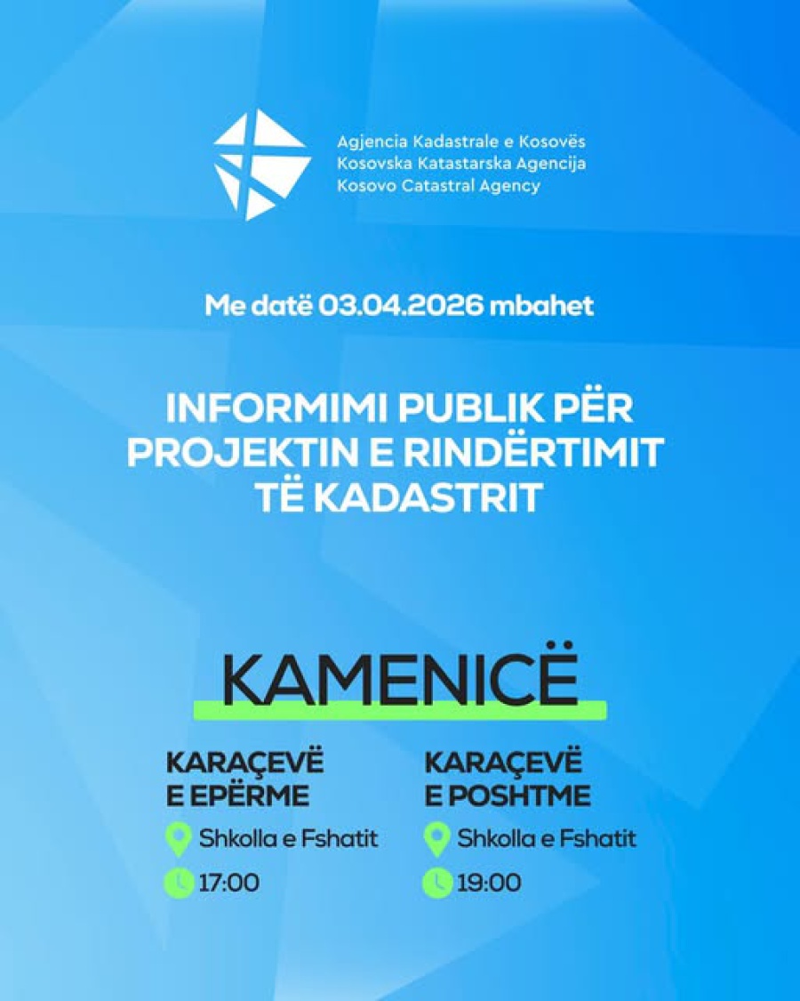 03/04/2026Njoftim i rëndësishëm për banorët e Kamenicës!