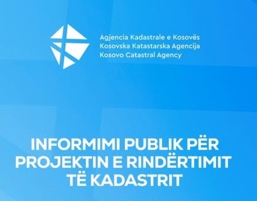 Agjencia Kadastrale e Kosovës ju njofton se në disa zona të caktuara brenda komunave Partesh, Viti, Kamenicë dhe Gjilan do të mbahen takime të hapura informuese lidhur me procesin e Rindërtimit të Kadastrit (RIK).