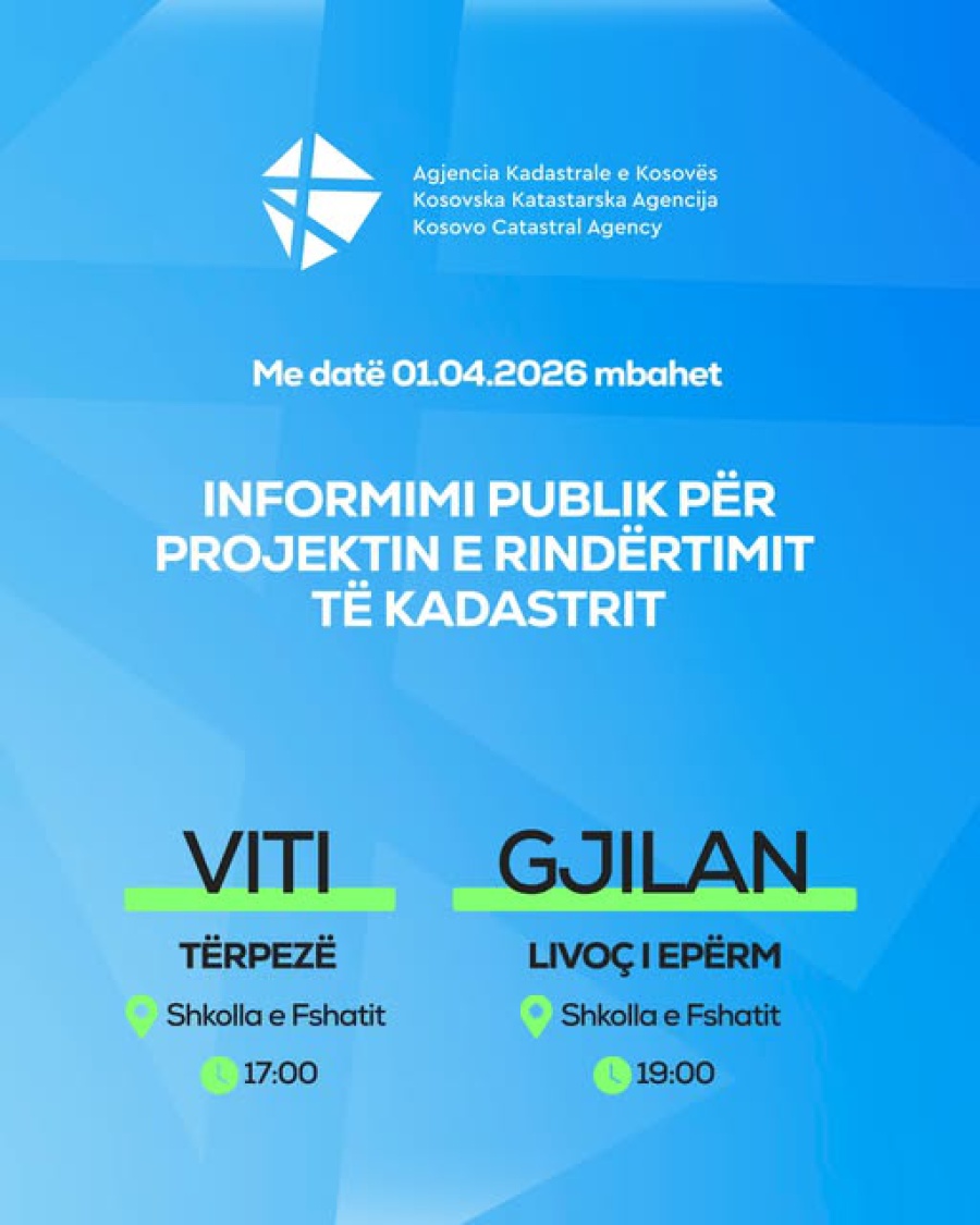 Agjencia Kadastrale e Kosovës fton banorët të marrin pjesë në takimet informuese mbi Projektin e Rindërtimit të Kadastrit.
