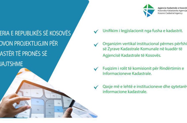 Qeveria e Republikës së Kosovës, në mbledhjen e 145-të të mbajtur me datë 7 qershor 2023, ka miratuar Projektligjin për Kadastër të ...